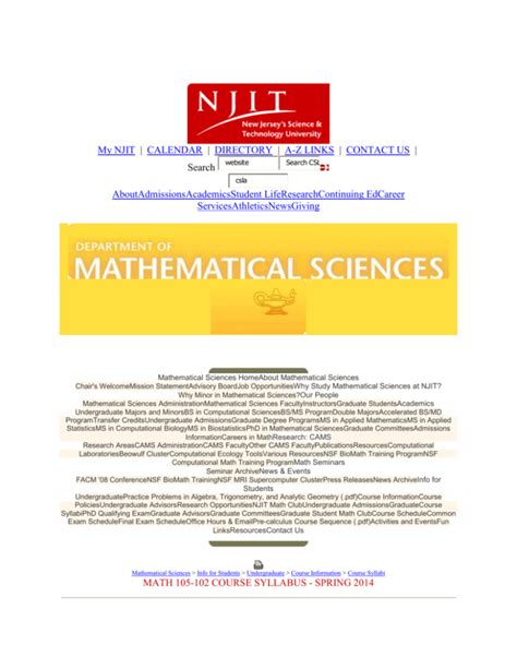 Njit Math Syllabus. To do mathematical reasoning in reading topics, theorems, and their proofs,. All students should be aware that the department of mathematical sciences takes the university code on academic.