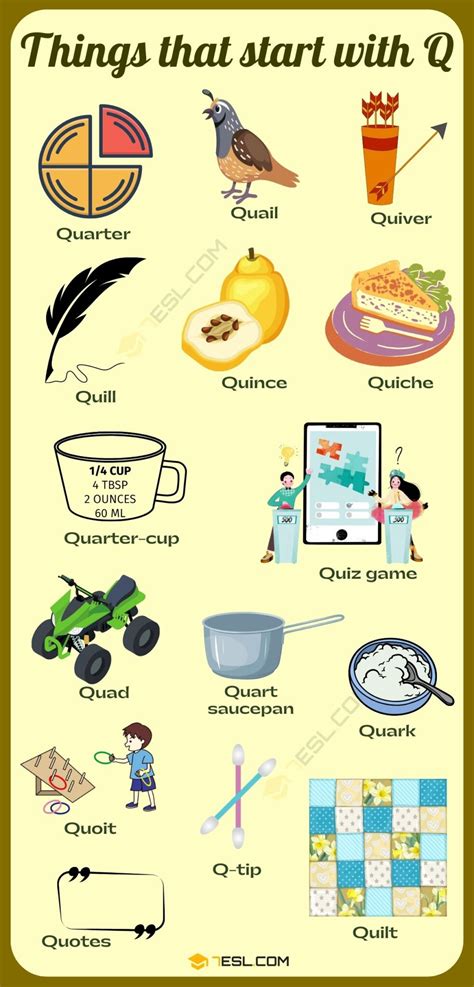 Children must find the picture cards of objects beginning with ‘q’ and. Web objects that start with q. Web when it comes to words that start with q, it’s important to think about both quality and quantity.